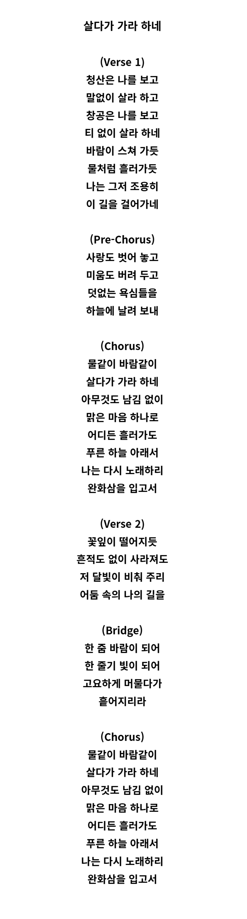 살다가 가라 하네 (Indie)